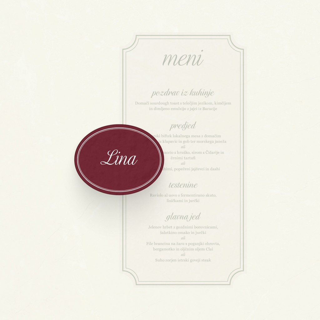 Vsako vabilo lahko dopolnita z dodatnimi tiskovinami, ki zaokrožijo celoten vtis poročnega dne.