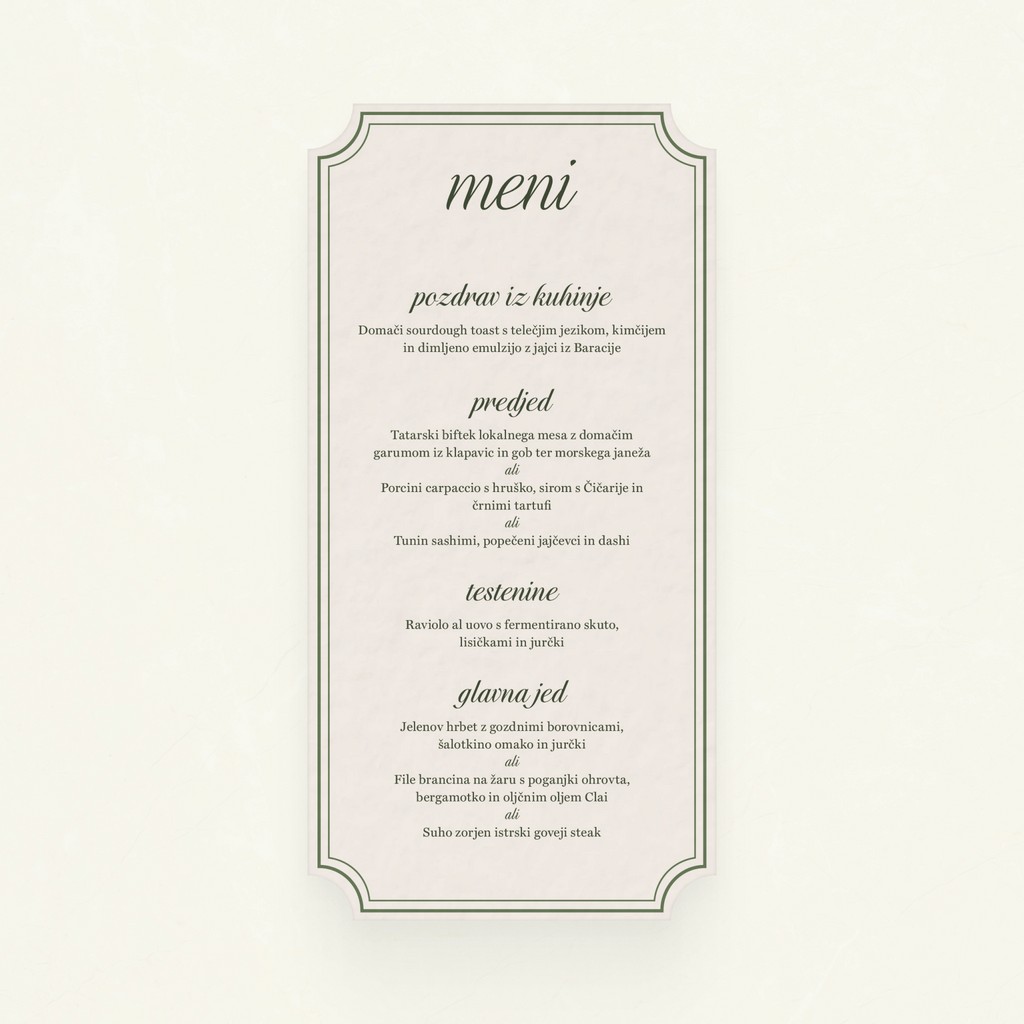Seveda! Vse linije omogočajo prilagoditev barve tiska, kuvert ali dodatkov (npr. resice, trakovi, neti), da se popolnoma ujemajo z vizualno podobo vajine poroke.